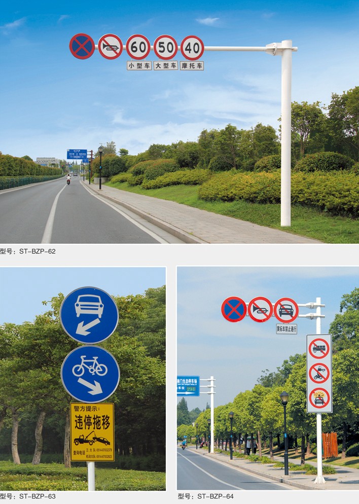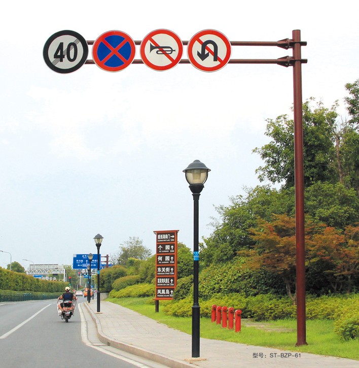 產品特點:● 交通標志牌是用來提醒、警示和引導交通參與者, 在行駛中根據道路情況提前采取相應措施, 以切實維護交通安全的重要設施。● 桿件表面應進行熱鍍鋅處理,立桿橫臂、法蘭盤以及各種連接件采用熱浸鍍……