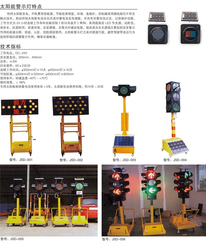 利用太陽能發電,不耗費常規能源,節能效果明顯,環保、免維護??刂破鞑捎梦㈦娔X芯片和無觸點技術,自動控制太陽能電池在白天進對蓄電池充電儲能,并具有對蓄電池過充、過放保護功能。工作方式為24小時連續工作帛和光敏控制(即日關夜開)兩種。采用超高亮LED作光源,功耗低,壽命長,抗震耐用,穿透性強。安裝便捷,無需另外鋪設電纜。極其適合在無源線又要起到安全警示作用的高速公路、國道、山區、危險路段使用。太陽能警示燈尤其對超速行駛,疲勞駕駛等違法行為起到積極的提醒警示作用,確保交通暢通。